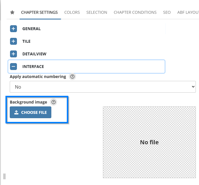De 'chapter settings' worden in het rechterpaneel getoond en bestaat uit verschillende tabbladen. In het eerste tabblad met het ster icoon zijn de vijf meest gebruikte instellingen te raadplegen.